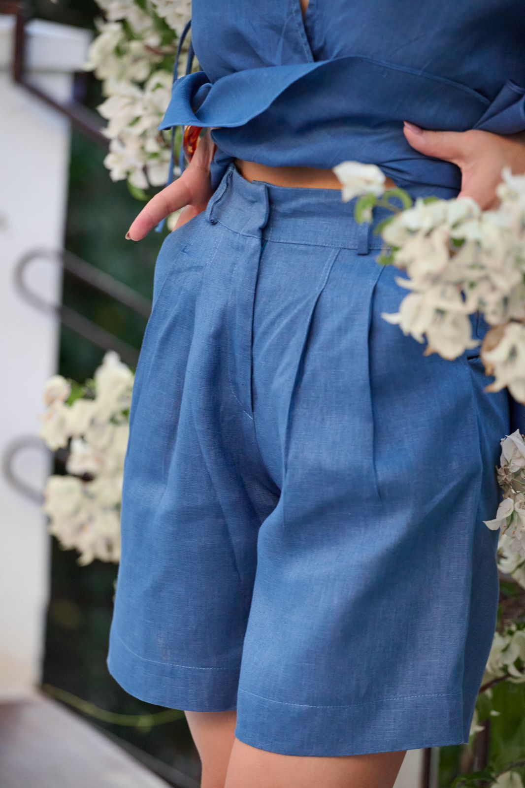 Duna Bermuda encarna la filosofía de Sol y Sombra con una propuesta fresca y refinada. Elaborada en lino puro, esta prenda juega con la paleta de azules profundos que transmiten serenidad y solidez, complementados por toques de marfil que resaltan sus líneas limpias. El diseño equilibrado entre luz y sombra la convierte en una opción versátil para climas cálidos, perfecta para quien valora la comodidad sin renunciar a la elegancia. Una bermuda que respira sofisticación en cada movimiento.